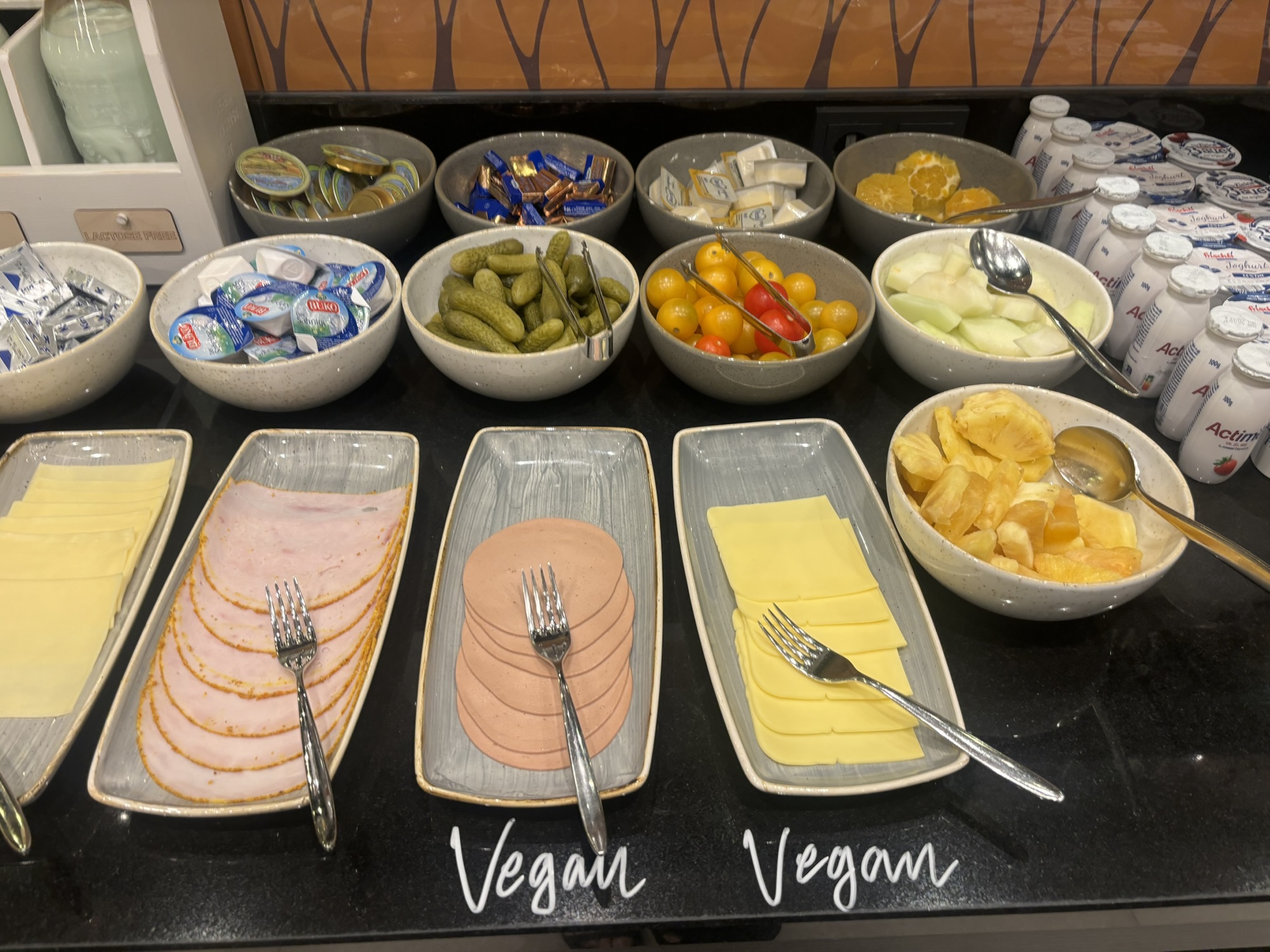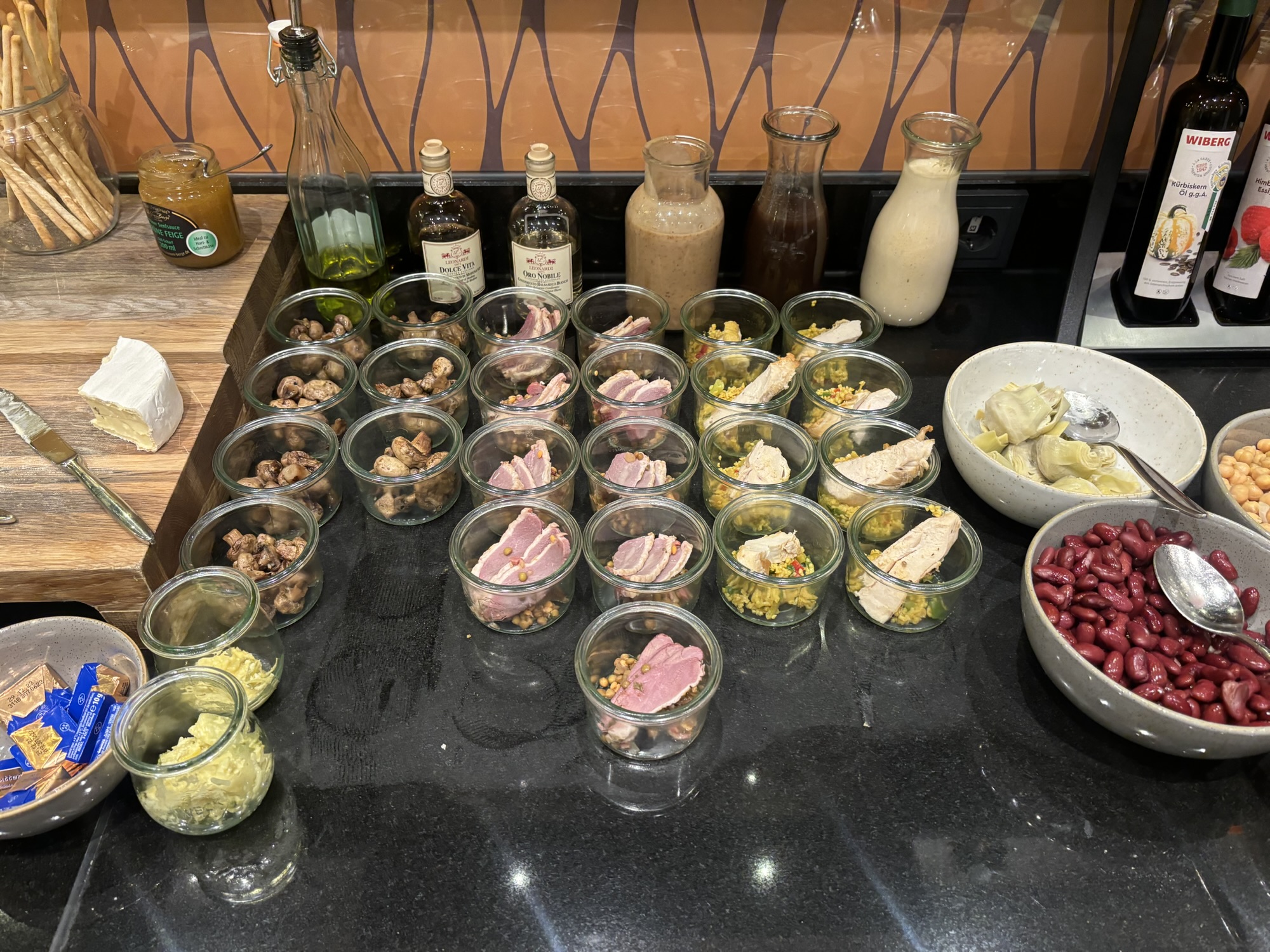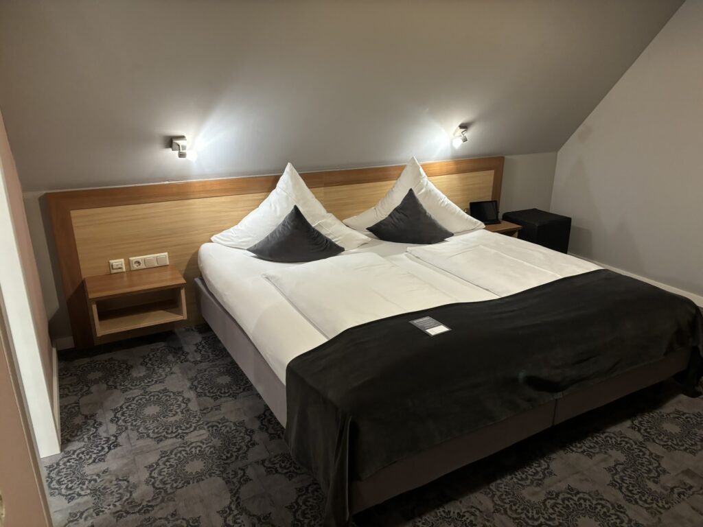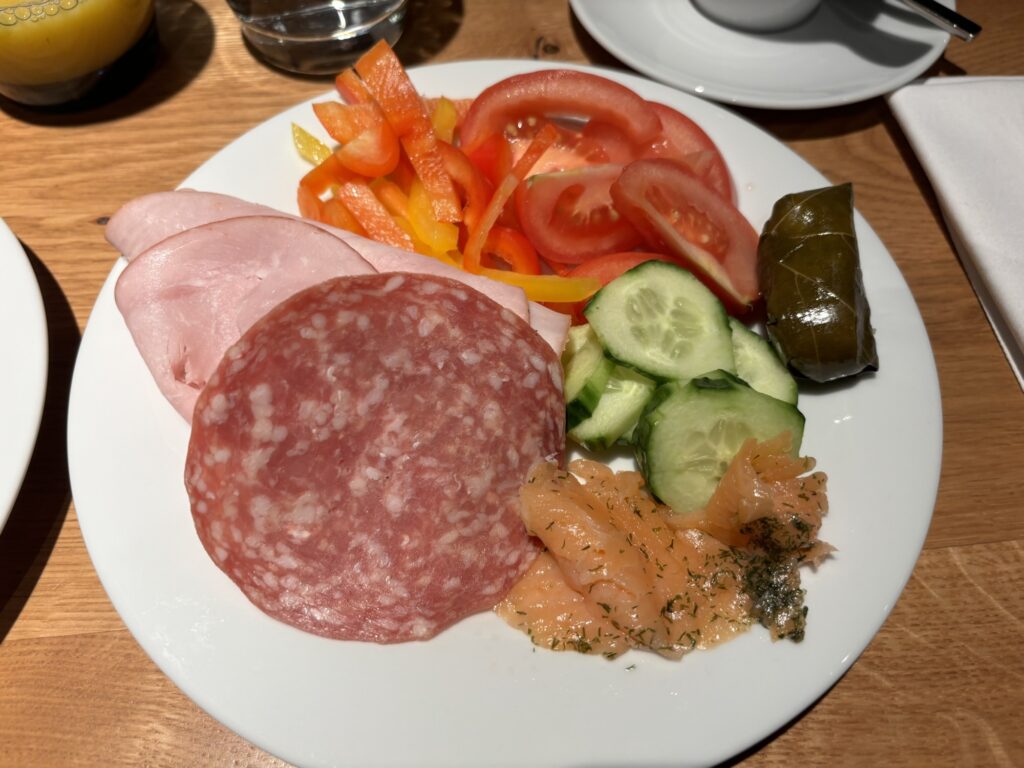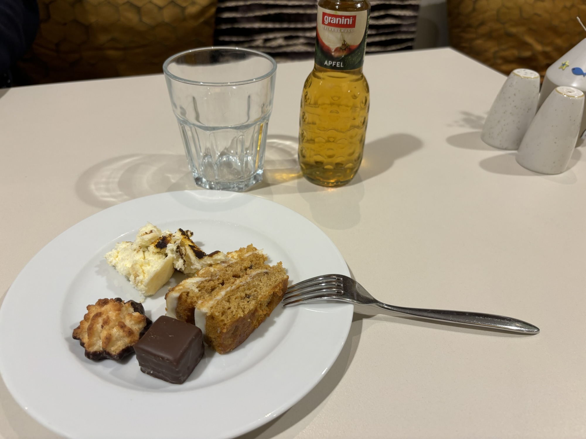 昨日とは打って変わってコンパクトなお部屋。綺麗です。ただバスタブはありませんでした。ここはシャワーの水捌けもイマイチ。ですが許容範囲です。ジム、プール完備。朝食はハムやウインナー、野菜にチーズ。ドイツはパンが美味しいです!お部屋にはお誕生日おめでとうとチーズケーキが置いてありました。お心遣い嬉しかったです。