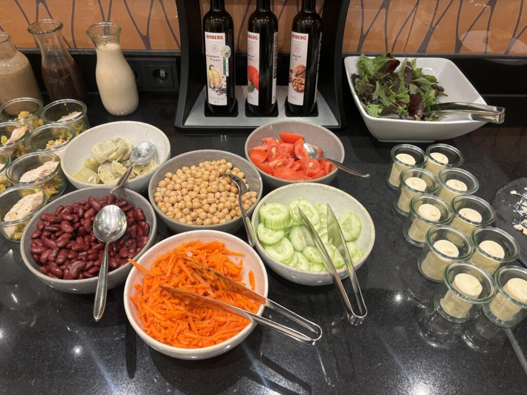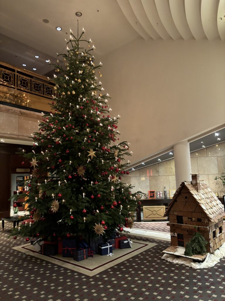 ルメリディアンはこの旅で初めて駅から遠い…と感じたホテル。移動中雨がぱらついてきて心が折れそうになりました。道がわかりにくく、スーツケース3つ持ちの私たちにとっては駅からの移動が階段ありでしんどかったです。ホテルはかなり大きい。このページのクリスマスツリーはこちらのホテルのものです。朝食の盛り付けが美しかった。