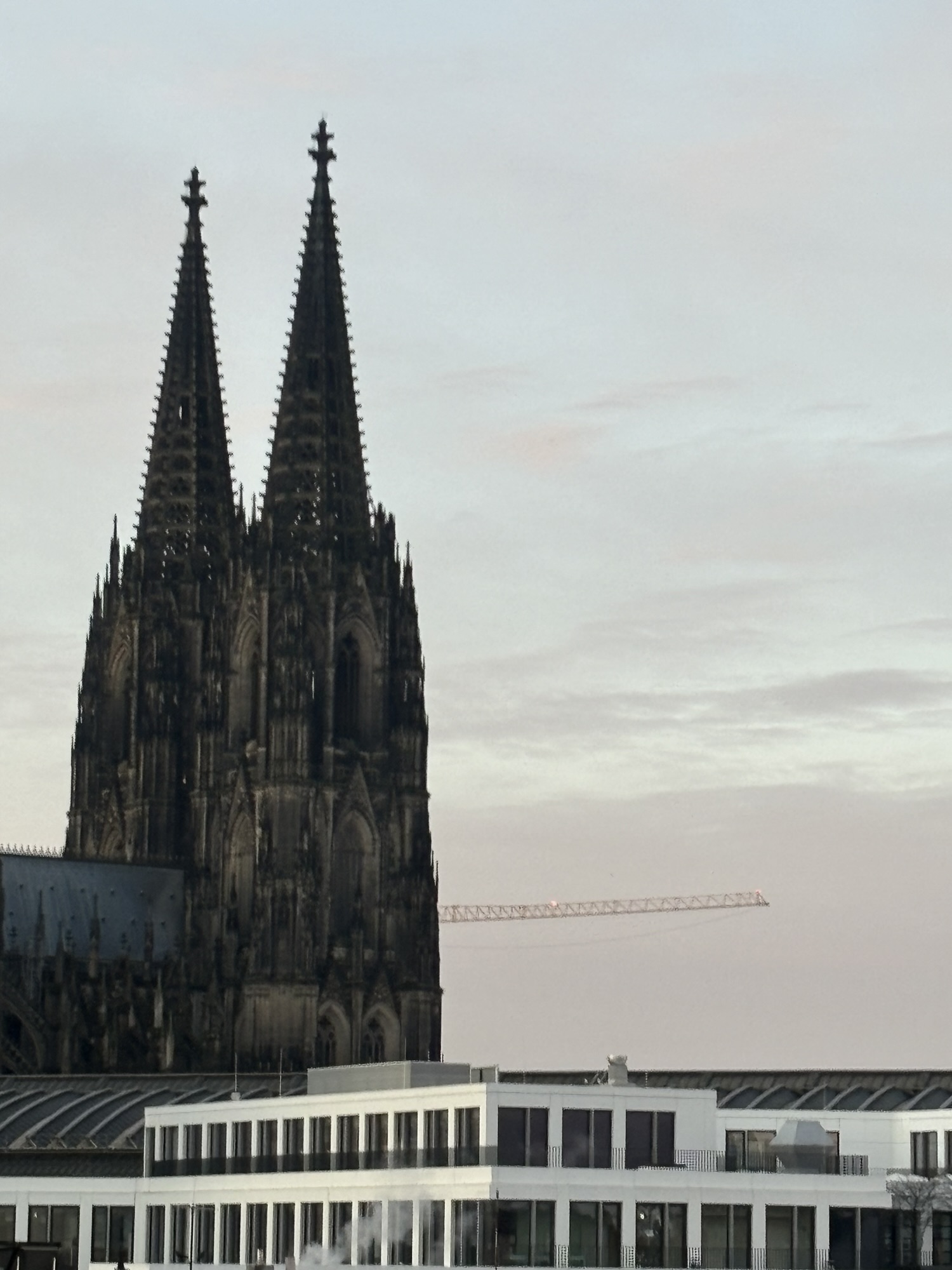 ケルンマリオットは唯一ラウンジが使用できたため、長居はしていませんが、こまめに行ってみました。朝ラウンジからベランダ?に出られます。寒寒とした空気の中、静かなドイツの朝の景色は最高でした。