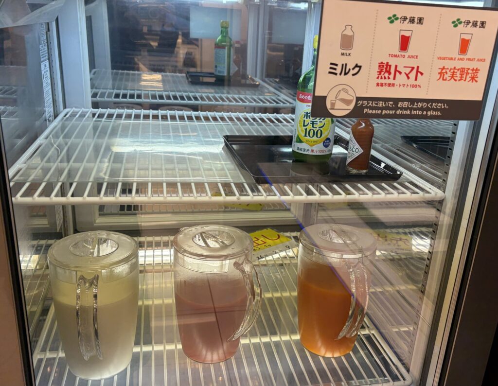青汁や野菜ジュースありました。私は下戸ですが夫は呑兵衛なので、夫の方が修行するなら楽しいはず。