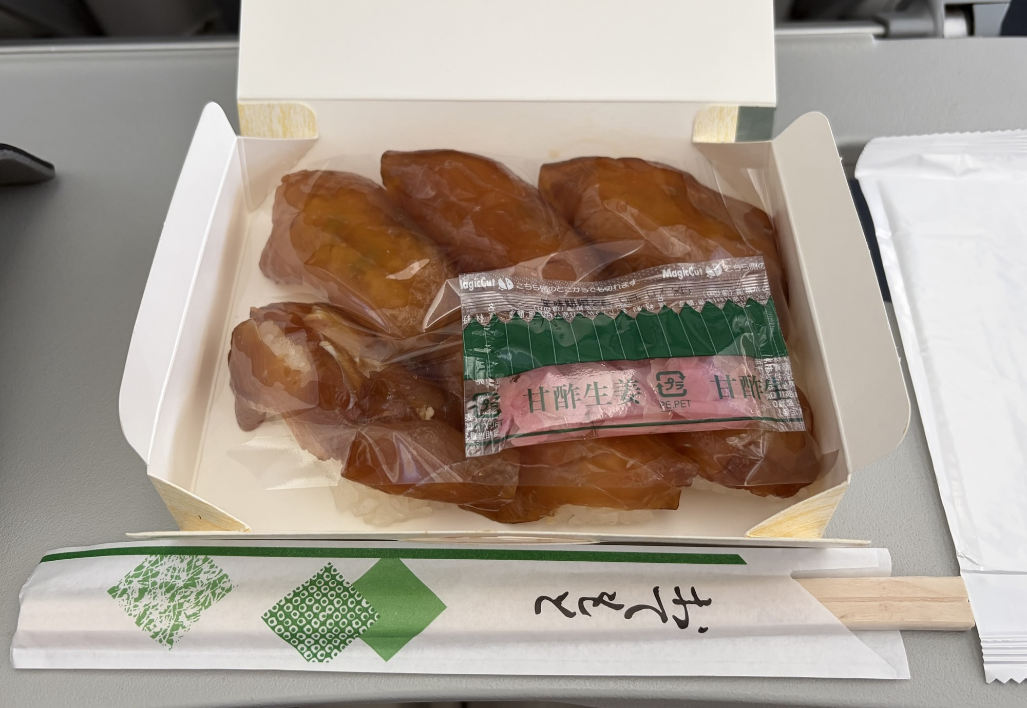 本日唯一の普通席のため、ランチに搭乗口の近くにあるお店で大東寿司と生紅芋タルトを購入。お寿司は同僚に美味しいと聞いていましたが、本当に美味しい!家族に買って帰ろうと思ったのですが、人気商品で次に行った時には売り切れ。次回は朝にお土産に買います。